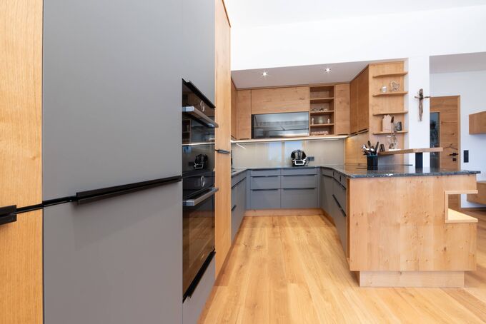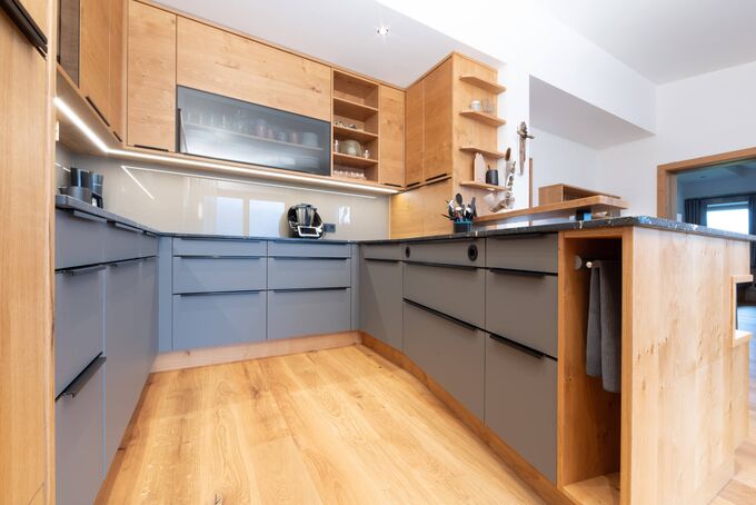 Moderne Einbauküche in Anthrazit und Wildeiche