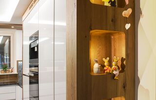 Eine Herausforderung war auch der Geschirrspüler im Hochschrank mit Griffloser Ausführung seitlich und darüber.