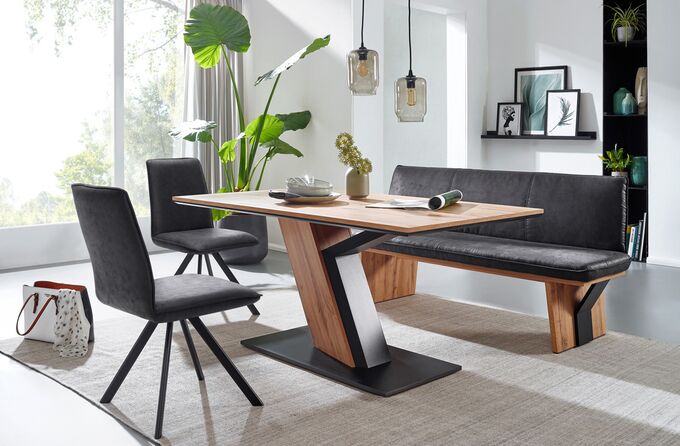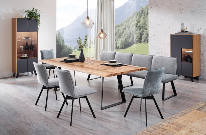 Ob moderne Esstische, komfortable Stühle, platzsparende Eckbänke oder gemütliche Sitzgruppen – Schösswender bietet eine große Auswahl für individuelle Einrichtungslösungen. Die Möbel sind in verschiedenen Holzarten, Stoffen und Farben erhältlich und lassen sich perfekt an Ihren Wohnstil anpassen.