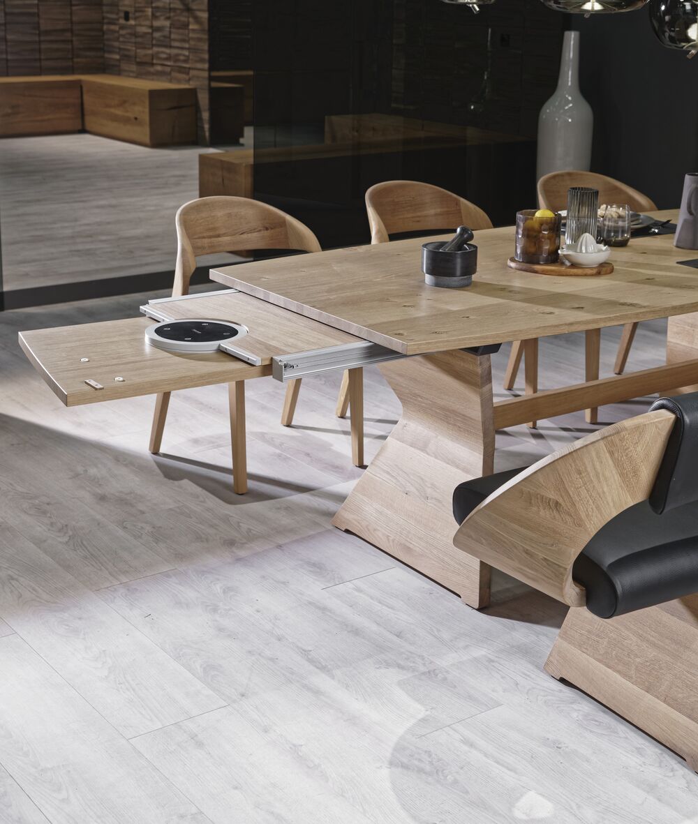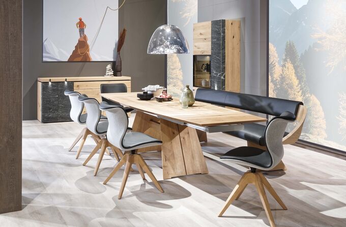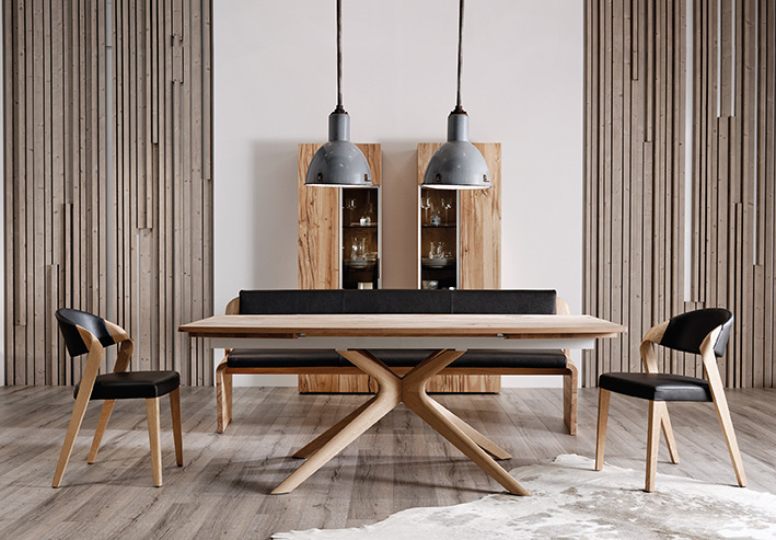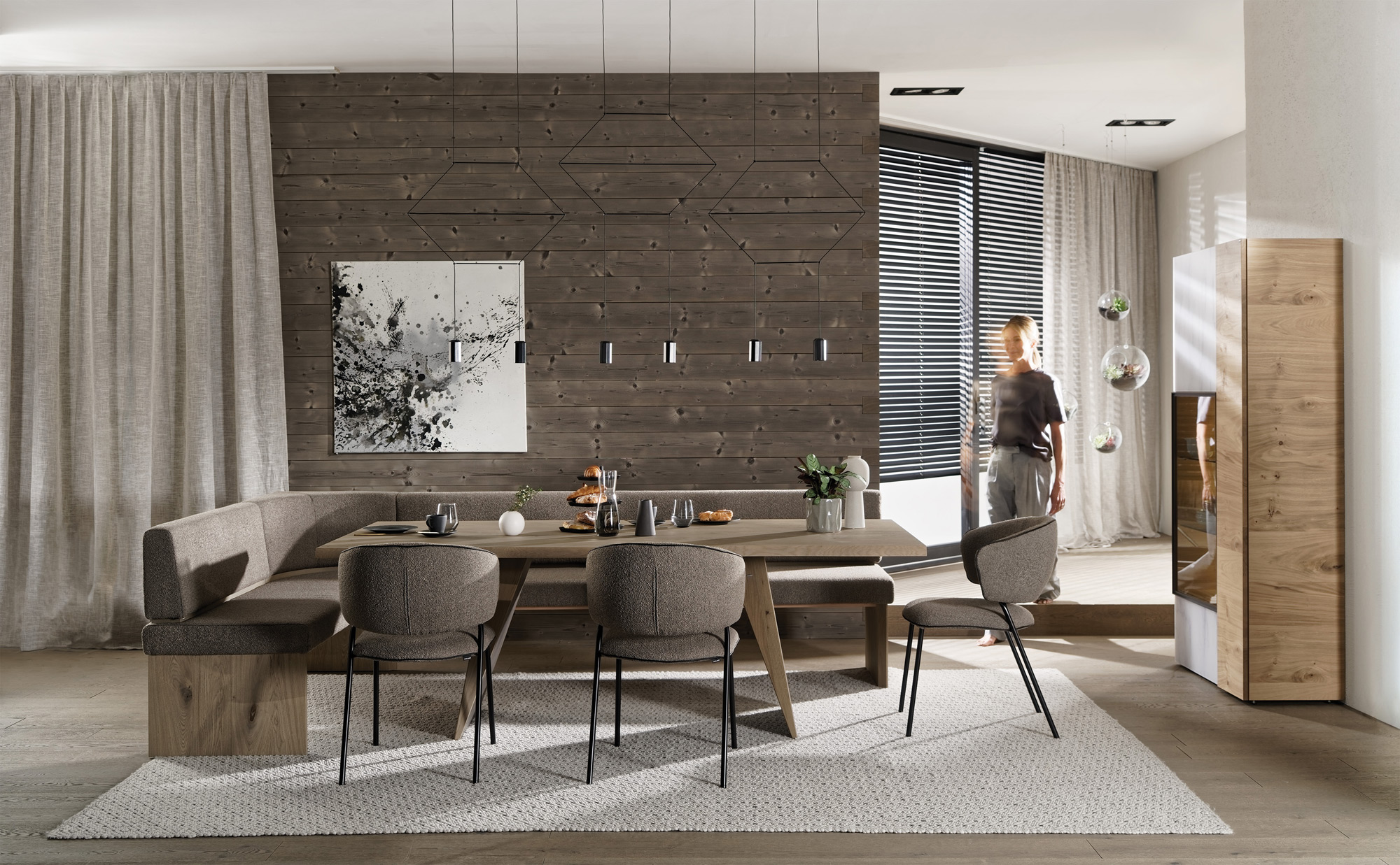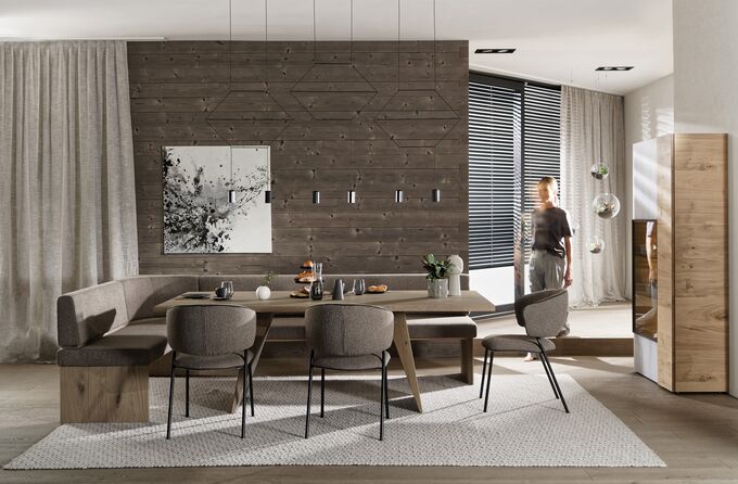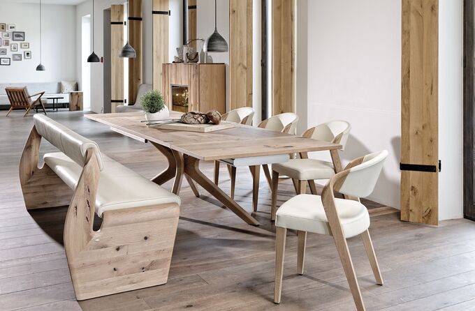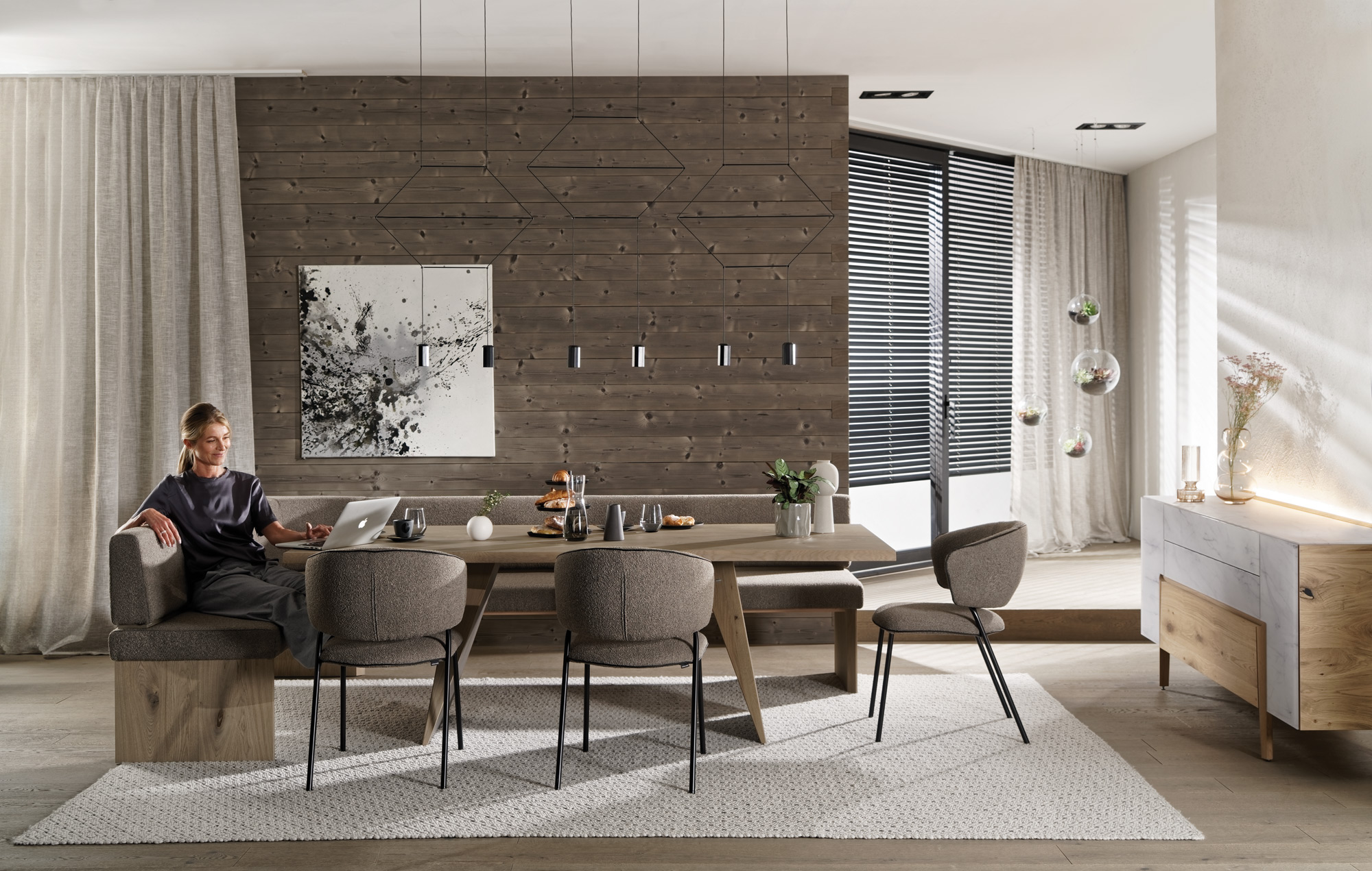 Das Modell Valpin aus Altholzeiche vereint moderne Ästhetik mit ursprünglichem Charme. Inspiriert von alten Stadl’n schafft es eine authentische alpine Atmosphäre. Der spannende Kontrast zwischen klarer Formensprache und einzigartigem Material betont den Charakter. Jede Maserung erzählt ihre eigene Geschichte, und das Altholz bringt durch seine vielseitige Nutzung zusätzlichen Charme mit. Optional lässt sich Valpin mit Merino-Schurwolle oder Glas kombinieren und schafft so eine zeitgemäße Interpretation alpiner Wohnlichkeit.