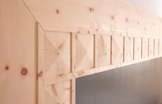 Die Details wie Pyramidenfüllungen, abgeschrägte Bettseiten und Nachtkästchenablagen mit Schubladen machen diese Arbeit zu etwas Besonderem. Gleich über dem Nachtkästchen wurde ein Lichtschalter mit Doppeltaster aus Zirbenholz bündig eingearbeitet, um die Lichtsteuerung vom Bett aus zu gewährleisten.